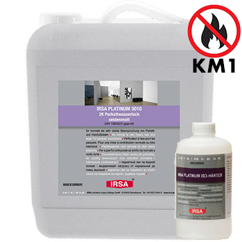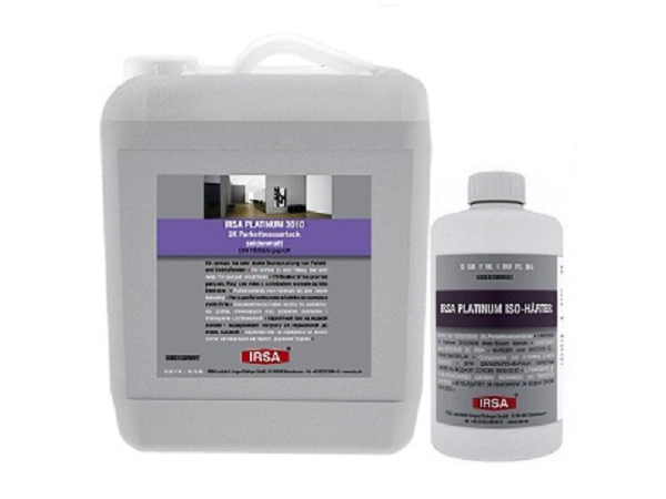 IRSA Platinum 3010 полуматовый 2К паркетный водный лак. Для покрытия паркетных и деревянных полов, а также лестниц и пробковых поверхностей, выдерживает нагрузки от нормальной до очень высокой, придаёт поверхностям светлый оттенок.